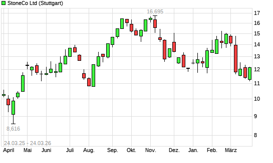 Mit dem Rücksetzer auf 11,37 EUR hat die Stoneco-Aktie (ISIN KYG851581069) am 23.03.2026 ein neues 6-Monats-Tief erreicht und damit den Kurs vom 09.03.2026 eingestellt.
