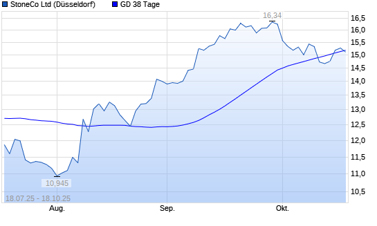 Mit dem Anstieg auf 15,40 EUR hat die Stoneco-Aktie am 17.10.2025 die 38-Tage-Linie nach oben gekreuzt.