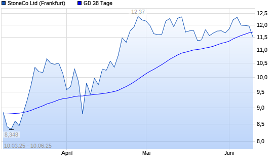 Mit dem Rücksetzer auf 11,66 EUR hat die Stoneco-Aktie am 09.06.2025 die 38-Tage-Linie nach unten gekreuzt.