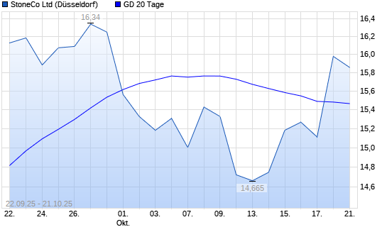 Mit dem Anstieg auf 16,03 EUR hat die Stoneco-Aktie am 20.10.2025 die 20-Tage-Linie nach oben gekreuzt.Die Stoneco-Aktie befindet sich seit dem 11.04.2025 im langfristigen Aufwärtstrend und ...weiterlesen