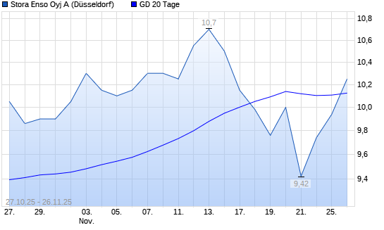 Mit dem Anstieg auf 10,35 EUR hat die Stora Enso-Aktie am 25.11.2025 die 20-Tage-Linie nach oben gekreuzt.
