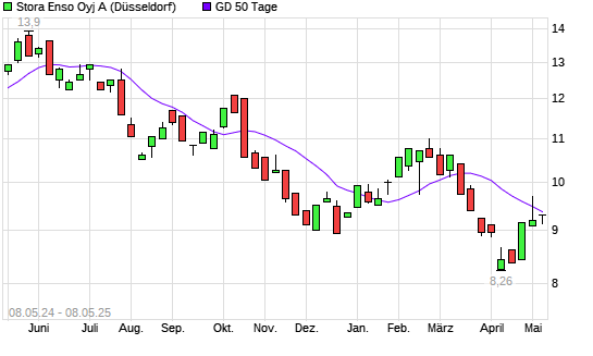 Mit dem Anstieg auf 9,36 EUR hat die Stora Enso-Aktie am 07.05.2025 die 50-Tage-Linie nach oben gekreuzt.