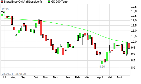 Mit dem Rücksetzer auf 9,48 EUR hat die Stora Enso-Aktie am 25.06.2025 die 200-Tage-Linie nach unten gekreuzt.