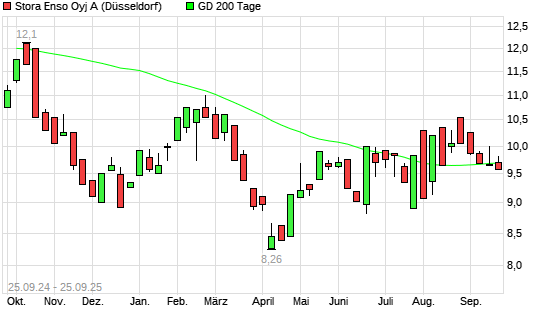 Mit dem Rücksetzer auf 9,60 EUR hat die Stora Enso-Aktie am 24.09.2025 die 200-Tage-Linie nach unten gekreuzt.Die Stora Enso-Aktie befand sich seit dem 22.09.2025 im langfristigen Aufwärtstrend ...weiterlesen