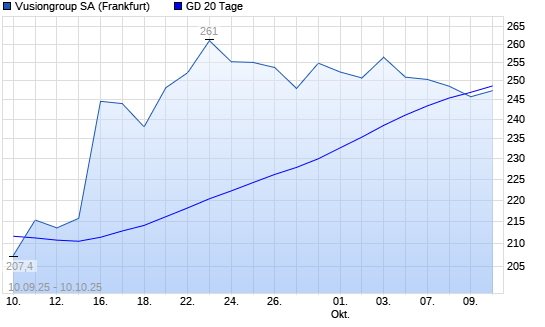 Mit dem Rücksetzer auf 245,80 EUR hat die Store Electronic Systems-Aktie am 09.10.2025 die 20-Tage-Linie nach unten gekreuzt.