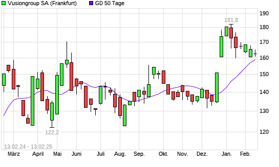Mit dem Rücksetzer auf 161,00 EUR hat die Store Electronic Systems-Aktie am 12.02.2025 die 50-Tage-Linie nach unten gekreuzt.
