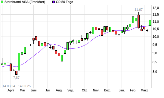 Mit dem Anstieg auf 10,82 EUR hat die Storebrand-Aktie am 13.03.2025 die 50-Tage-Linie nach oben gekreuzt.