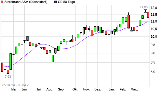 Mit dem Rücksetzer auf 10,80 EUR hat die Storebrand-Aktie am 04.04.2025 die 50-Tage-Linie nach unten gekreuzt.