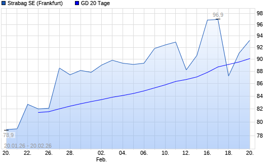 Mit dem Anstieg auf 91,00 EUR hat die Strabag SE-Aktie am 19.02.2026 die 20-Tage-Linie nach oben gekreuzt.
