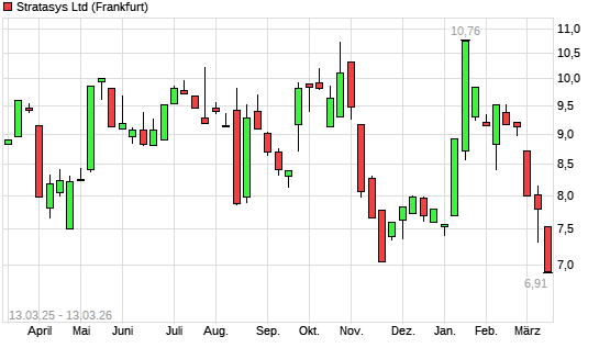 Mit dem Rücksetzer auf 7,00 EUR hat die Stratasys-Aktie (ISIN IL0011267213) am 12.03.2026 ein neues 12-Monats-Tief erreicht und damit den Kurs vom 21.11.2025 eingestellt.
