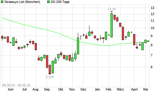 Mit dem Anstieg auf 8,46 EUR hat die Stratasys-Aktie am 05.05.2025 die 200-Tage-Linie nach oben gekreuzt.