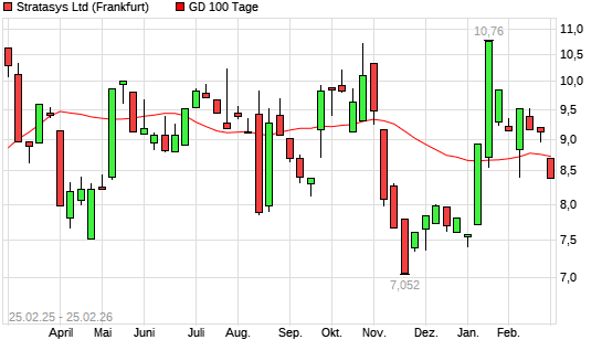 Mit dem Rücksetzer auf 8,50 EUR hat die Stratasys-Aktie am 24.02.2026 die 100-Tage-Linie nach unten gekreuzt.