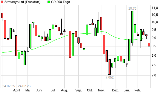 Mit dem Rücksetzer auf 8,70 EUR hat die Stratasys-Aktie am 23.02.2026 die 200-Tage-Linie nach unten gekreuzt.