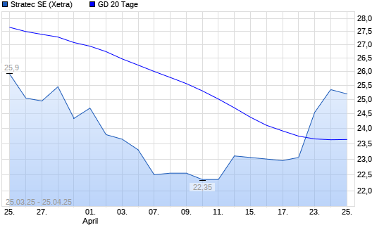 Mit dem Anstieg auf 24,60 EUR hat die Stratec-Aktie am 24.04.2025 die 20-Tage-Linie nach oben gekreuzt.