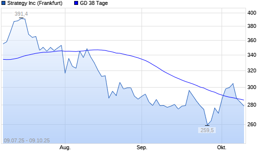 Mit dem Rücksetzer auf 283,30 EUR hat die Strategy-Aktie am 08.10.2025 die 38-Tage-Linie nach unten gekreuzt.