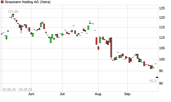 Mit dem Rücksetzer auf 92,00 EUR hat die Straumann-Aktie (ISIN CH1175448666) am 25.09.2025 ein neues 12-Monats-Tief erreicht und damit den Kurs vom 22.09.2025 eingestellt.