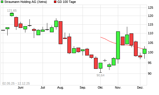 Mit dem Anstieg auf 100,50 EUR hat die Straumann-Aktie am 11.12.2025 die 100-Tage-Linie nach oben gekreuzt.