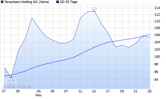 Mit dem Anstieg auf 104,00 EUR hat die Straumann-Aktie am 24.11.2025 die 20-Tage-Linie nach oben gekreuzt.