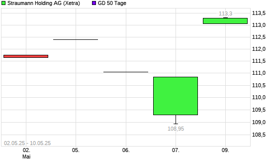Mit dem Anstieg auf 112,30 EUR hat die Straumann-Aktie am 09.05.2025 die 50-Tage-Linie nach oben gekreuzt.