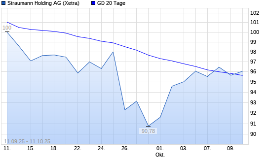 Mit dem Rücksetzer auf 91,54 EUR hat die Straumann-Aktie am 10.10.2025 die 20-Tage-Linie nach unten gekreuzt.