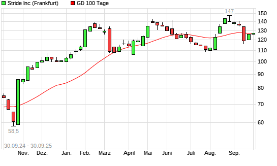 Mit dem Anstieg auf 127,00 EUR hat die Stride-Aktie am 29.09.2025 die 100-Tage-Linie nach oben gekreuzt.