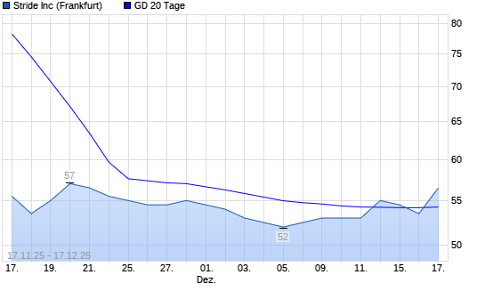 Mit dem Rücksetzer auf 53,50 EUR hat die Stride-Aktie am 16.12.2025 die 20-Tage-Linie nach unten gekreuzt.