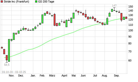 Mit dem Rücksetzer auf 123,00 EUR hat die Stride-Aktie am 02.10.2025 die 200-Tage-Linie nach unten gekreuzt.Die Stride-Aktie befand sich seit dem 26.09.2025 im ...weiterlesen