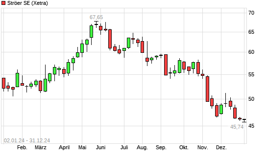 Mit dem Rücksetzer auf 45,80 EUR hat die Ströer-Aktie (ISIN DE0007493991) am 30.12.2024 ein neues 12-Monats-Tief erreicht und damit den Kurs vom 27.12.2024 eingestellt.