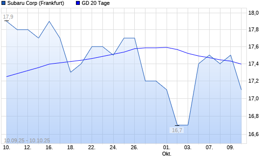 Mit dem Anstieg auf 17,50 EUR hat die Subaru-Aktie am 09.10.2025 die 20-Tage-Linie nach oben gekreuzt.