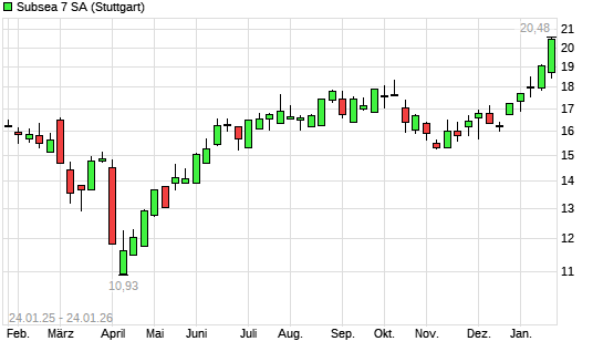 Mit dem Anstieg auf 20,40 EUR hat die Subsea 7-Aktie (ISIN LU0075646355) am 23.01.2026 ein neues 10-Jahres-Hoch erreicht und damit den Kurs vom 22.01.2026 eingestellt.