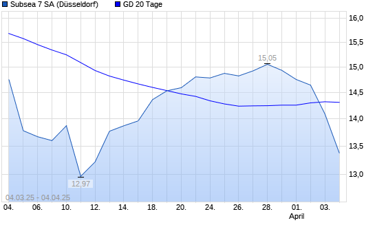 Mit dem Rücksetzer auf 14,12 EUR hat die Subsea 7-Aktie am 03.04.2025 die 20-Tage-Linie nach unten gekreuzt.