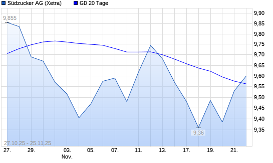 Mit dem Anstieg auf 9,57 EUR hat die Südzucker-Aktie am 24.11.2025 die 20-Tage-Linie nach oben gekreuzt.
