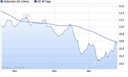 Mit dem Anstieg auf 10,54 EUR hat die Südzucker-Aktie am 22.01.2025 die 38-Tage-Linie nach oben gekreuzt.