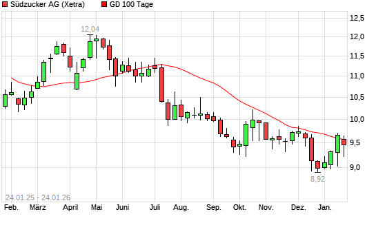 Mit dem Rücksetzer auf 9,45 EUR hat die Südzucker-Aktie am 23.01.2026 die 100-Tage-Linie nach unten gekreuzt.