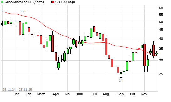 Mit dem Anstieg auf 33,20 EUR hat die Suess MicroTec-Aktie am 24.11.2025 die 100-Tage-Linie nach oben gekreuzt.