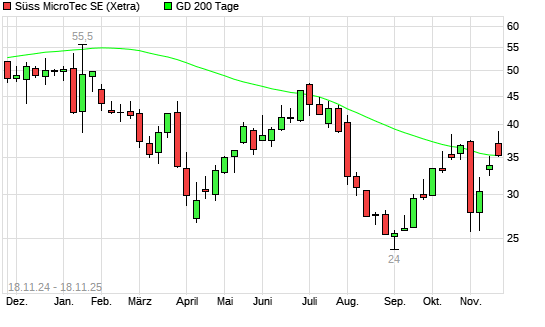 Mit dem Anstieg auf 35,90 EUR hat die Suess MicroTec-Aktie am 17.11.2025 die 200-Tage-Linie nach oben gekreuzt.