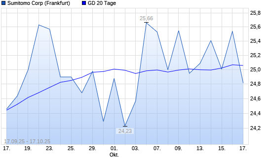 Mit dem Anstieg auf 25,54 EUR hat die Sumitomo-Aktie am 16.10.2025 die 20-Tage-Linie nach oben gekreuzt.