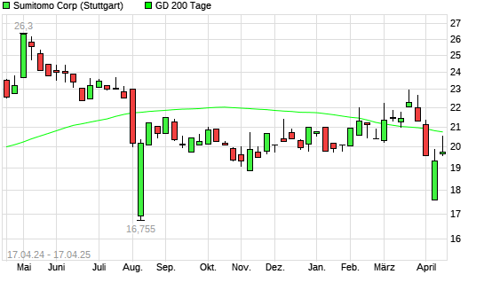 Mit dem Anstieg auf 20,79 EUR hat die Sumitomo-Aktie am 16.04.2025 die 200-Tage-Linie nach oben gekreuzt.