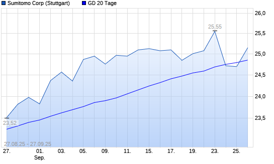 Mit dem Rücksetzer auf 24,68 EUR hat die Sumitomo-Aktie am 26.09.2025 die 20-Tage-Linie nach unten gekreuzt.