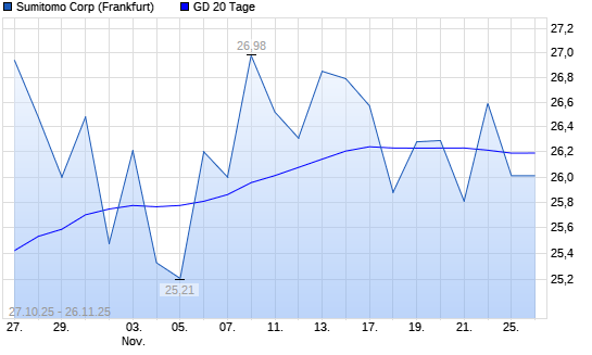 Mit dem Rücksetzer auf 26,01 EUR hat die Sumitomo-Aktie am 25.11.2025 die 20-Tage-Linie nach unten gekreuzt.