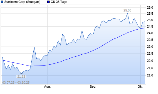 Mit dem Rücksetzer auf 24,23 EUR hat die Sumitomo-Aktie am 02.10.2025 die 38-Tage-Linie nach unten gekreuzt.