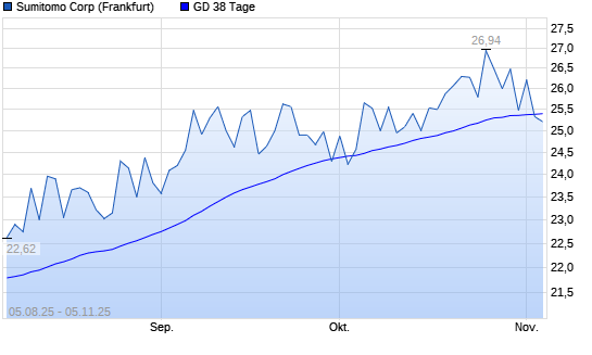 Mit dem Rücksetzer auf 25,33 EUR hat die Sumitomo-Aktie am 04.11.2025 die 38-Tage-Linie nach unten gekreuzt.
