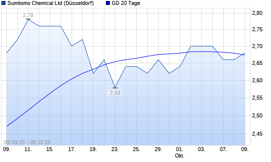 Mit dem Rücksetzer auf 2,66 EUR hat die Sumitomo Chemical-Aktie am 08.10.2025 die 20-Tage-Linie nach unten gekreuzt.