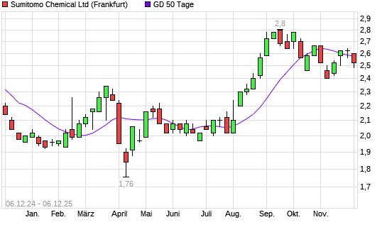 Mit dem Rücksetzer auf 2,52 EUR hat die Sumitomo Chemical-Aktie am 05.12.2025 die 50-Tage-Linie nach unten gekreuzt.