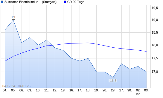 Mit dem Anstieg auf 17,20 EUR hat die Sumitomo Electric Industries-Aktie am 03.01.2025 die 20-Tage-Linie nach oben gekreuzt.