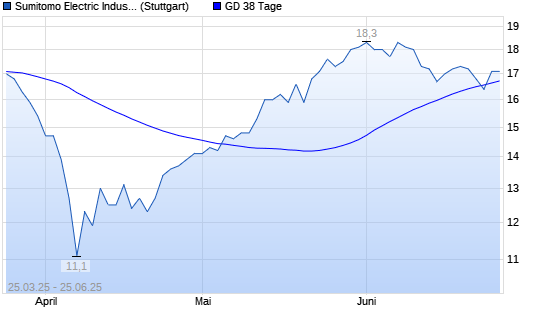 Mit dem Anstieg auf 16,90 EUR hat die Sumitomo Electric Industries-Aktie am 24.06.2025 die 38-Tage-Linie nach oben gekreuzt.