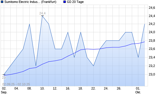Mit dem Rücksetzer auf 23,40 EUR hat die Sumitomo Electric Industries-Aktie am 01.10.2025 die 20-Tage-Linie nach unten gekreuzt.