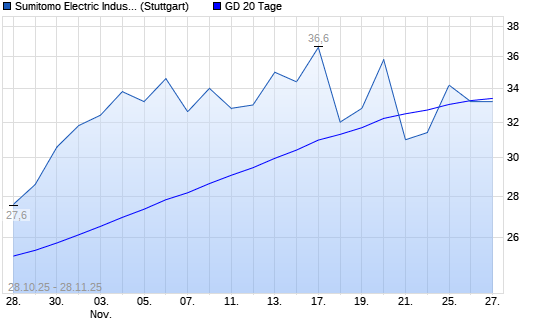 Mit dem Rücksetzer auf 32,80 EUR hat die Sumitomo Electric Industries-Aktie am 27.11.2025 die 20-Tage-Linie nach unten gekreuzt.