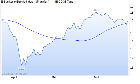Mit dem Rücksetzer auf 16,20 EUR hat die Sumitomo Electric Industries-Aktie am 23.06.2025 die 38-Tage-Linie nach unten gekreuzt.