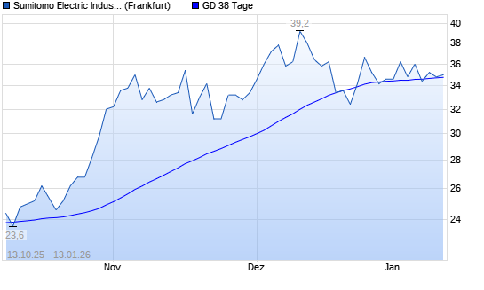 Mit dem Rücksetzer auf 34,80 EUR hat die Sumitomo Electric Industries-Aktie am 12.01.2026 die 38-Tage-Linie nach unten gekreuzt.